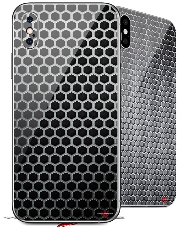 2 Decal style Skin Wraps set for Apple iPhone X and XS Mesh Metal Hex 02