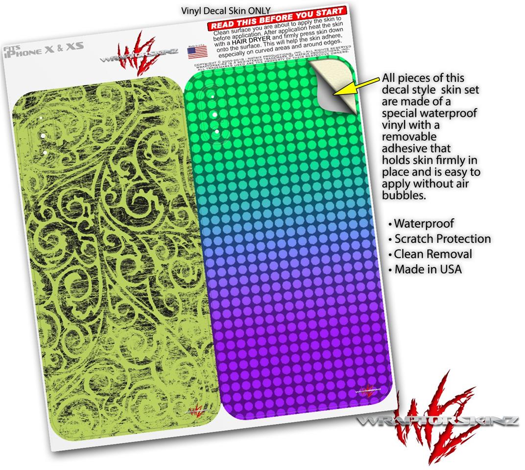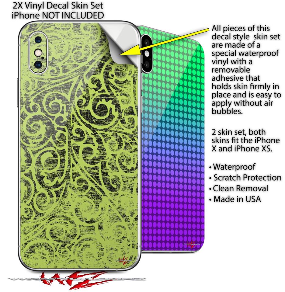 • 2 Decal style vinyl skins covers back side of the Apple iPhone X and iPhone XS - Not a hard case - Compatible with most Clear and TPU cases.