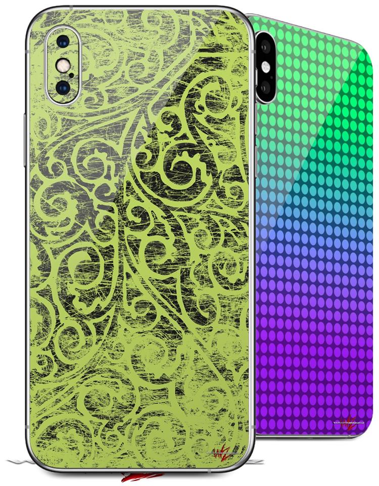 2 Decal style Skin Wraps set for Apple iPhone X and XS Folder Doodles Sage Green