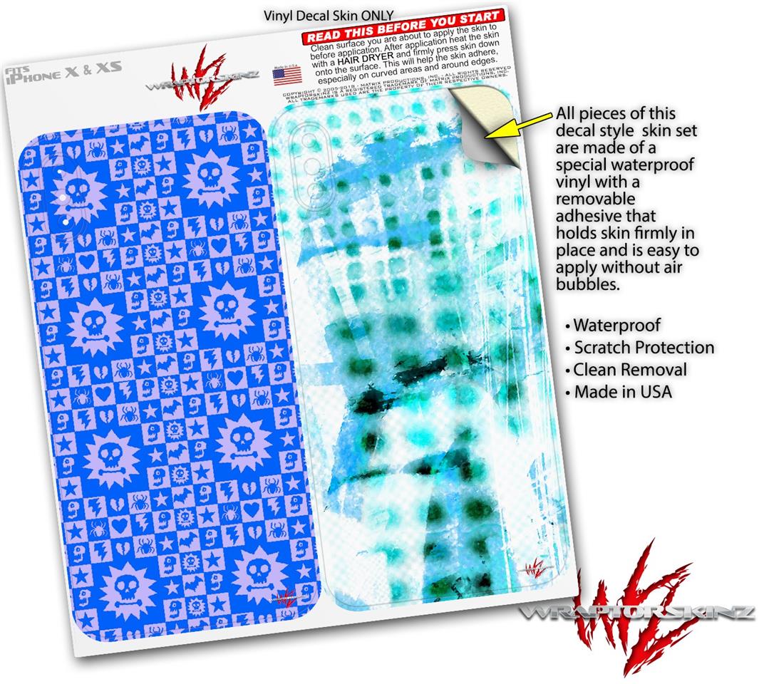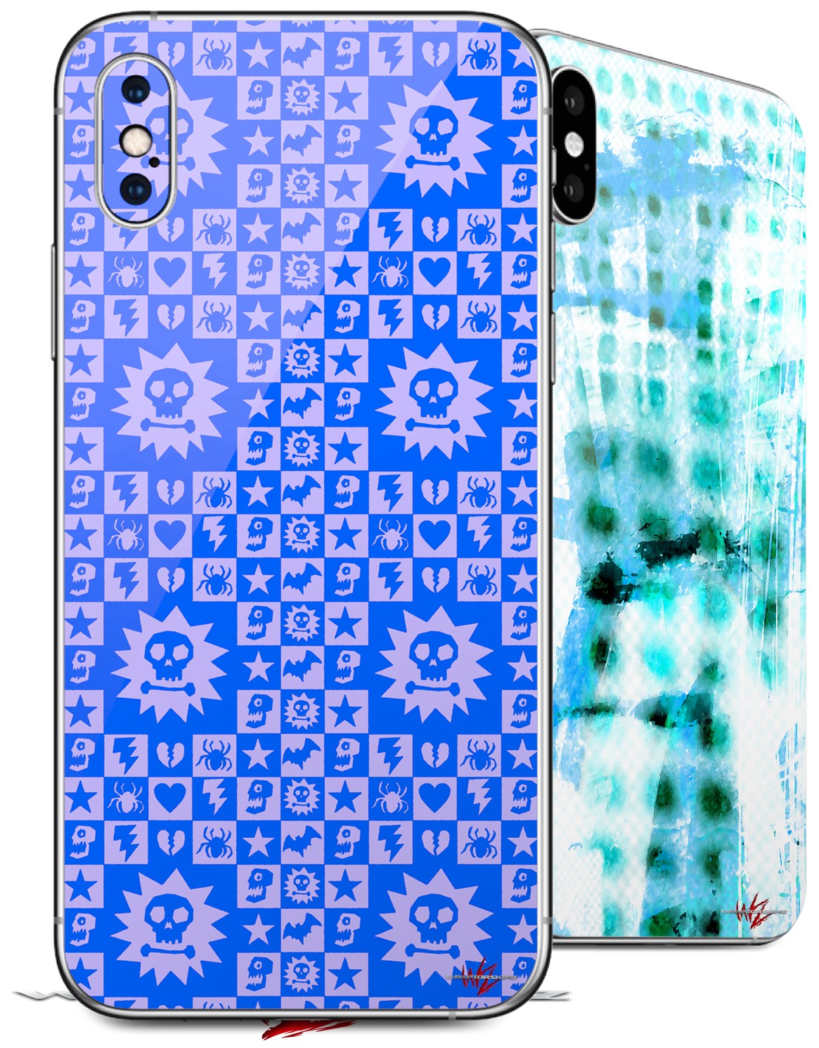 2 Decal style Skin Wraps set for Apple iPhone X and XS Gothic Punk Pattern Blue