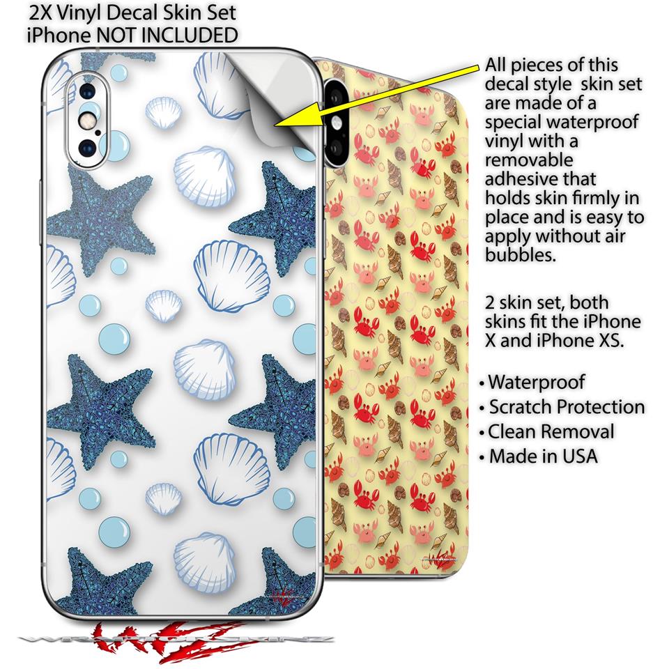 2 Decal style Skin Wraps set for Apple iPhone X and XS Starfish and Sea Shells White