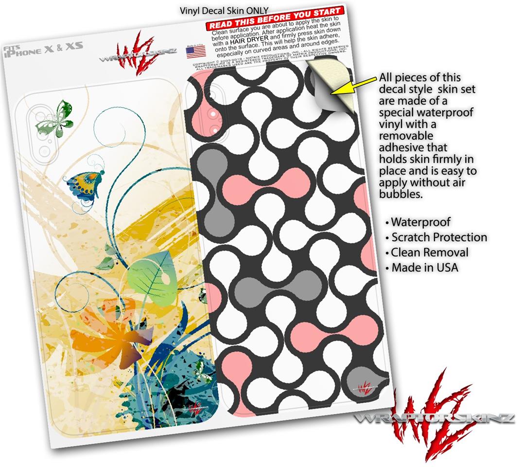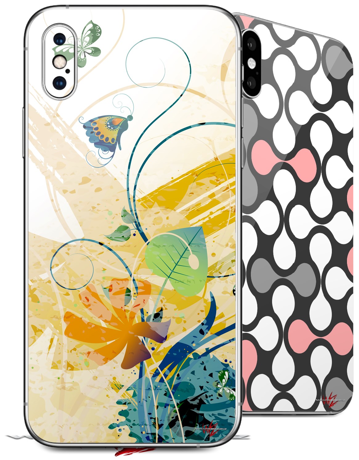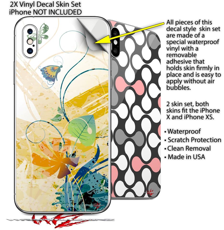 2 Decal style Skin Wraps set for Apple iPhone X and XS Water Butterflies