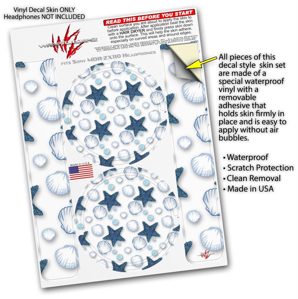 Decal style Skin Wrap for Sony MDR ZX110 Headphones Starfish and Sea Shells White (HEADPHONES NOT INCLUDED)