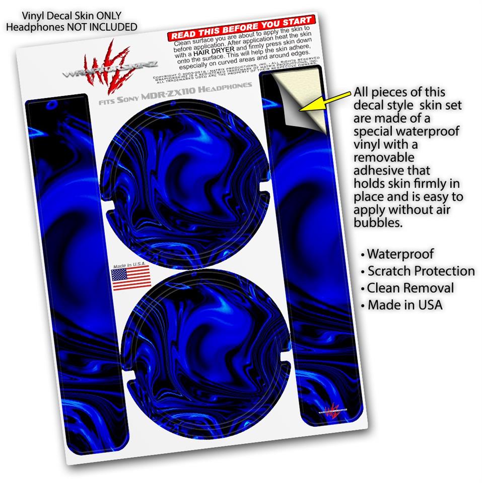 Decal style Skin Wrap compatible with Sony MDR ZX110 Headphones Liquid Metal Chrome Royal Blue (HEADPHONES NOT INCLUDED)