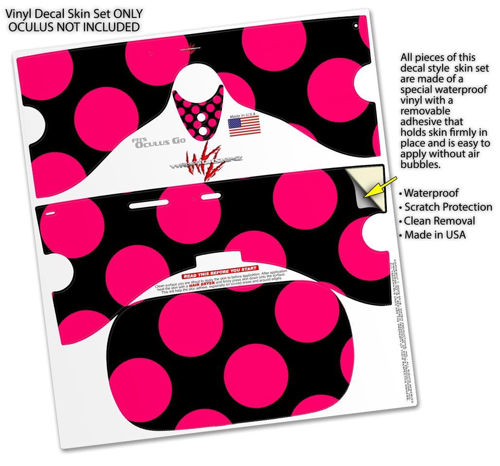 Decal style Skin Wrap compatible with Oculus Go Headset - Kearas Polka Dots Pink On Black (OCULUS NOT INCLUDED)