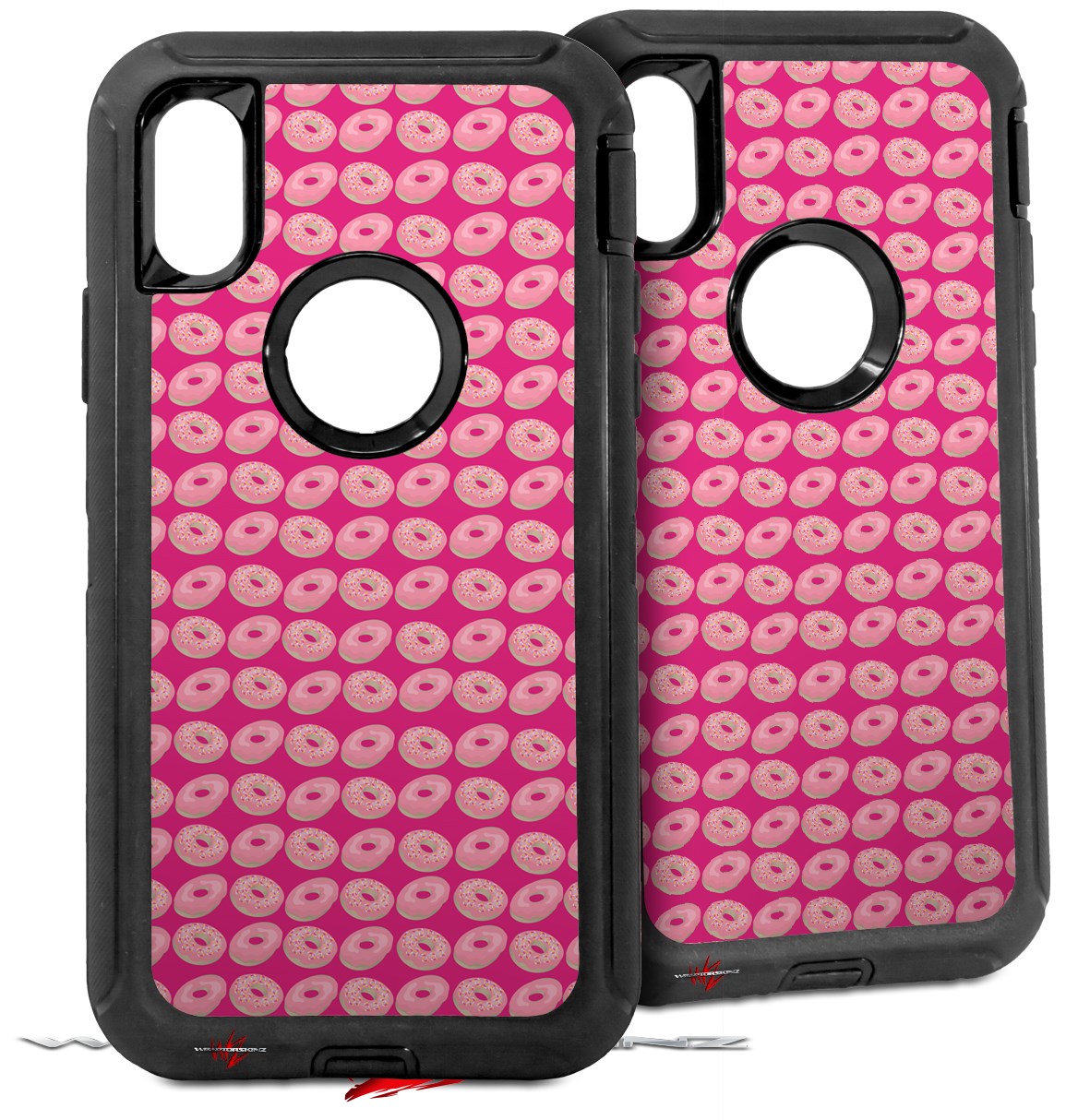 2x Decal style Skin Wrap Set compatible with Otterbox Defender iPhone X and Xs Case - Donuts Hot Pink Fuchsia (CASE NOT INCLUDED)