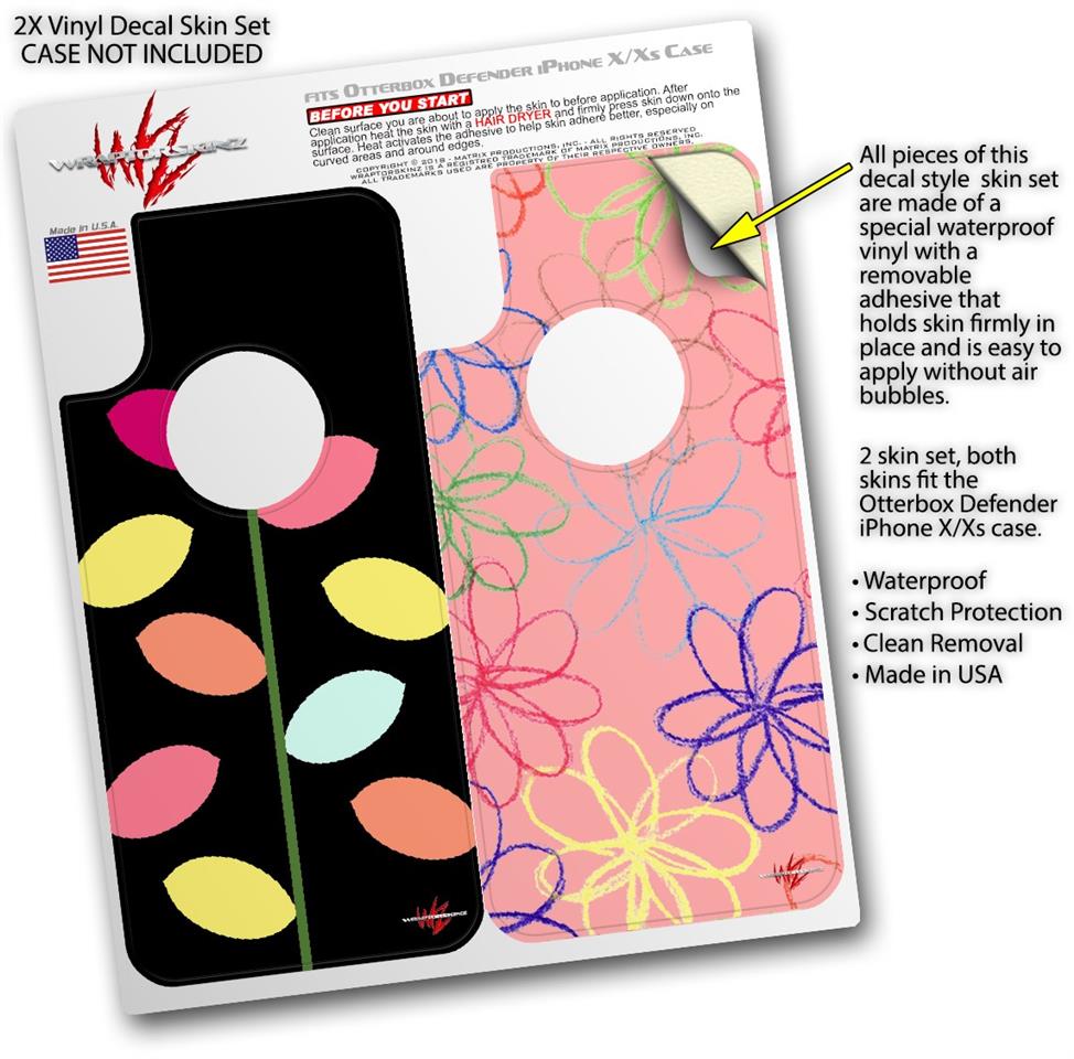 • CASE NOT INCLUDED - 2 Skins cover back surface of 2 Otterbox Defender iPhone X / Xs cases as pictured.