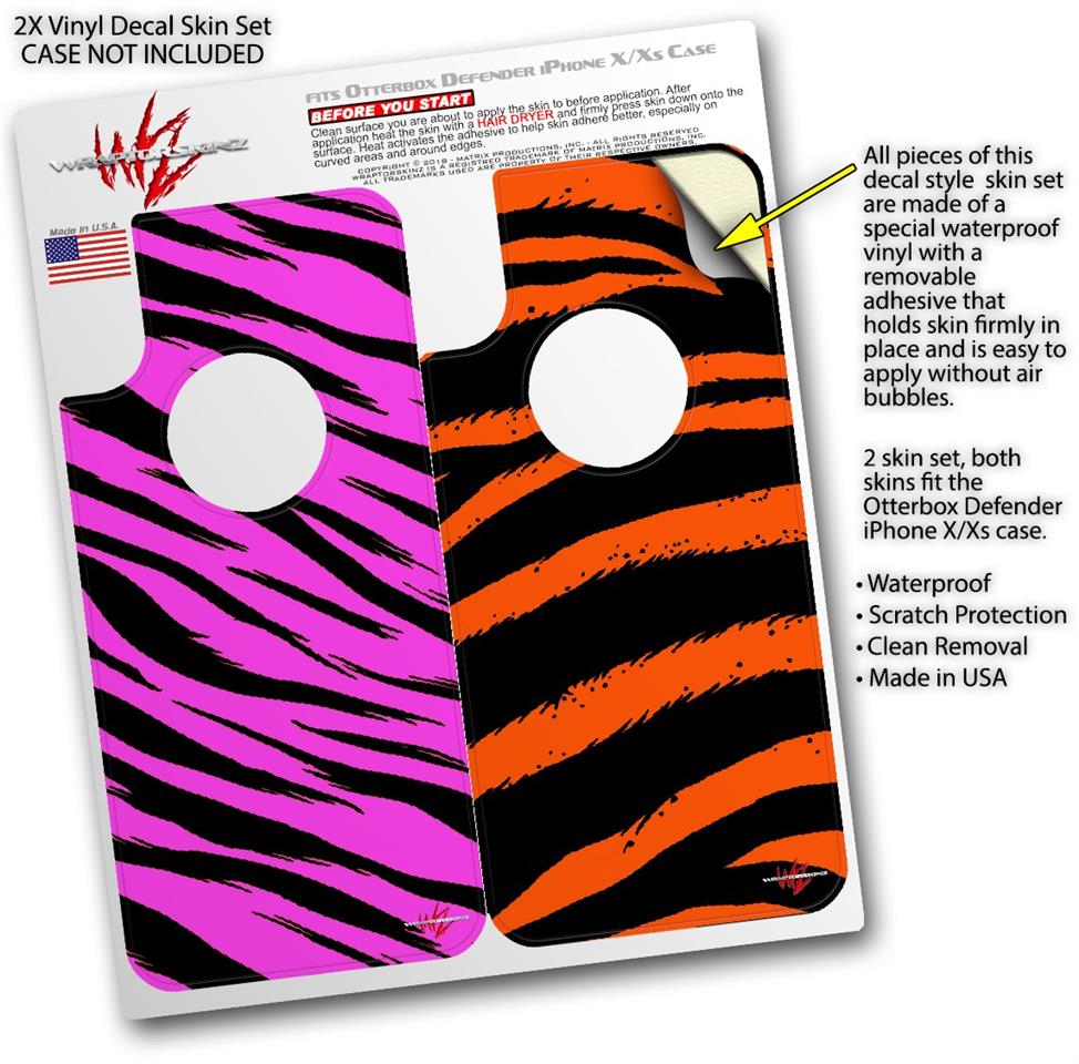 2x Decal style Skin Wrap Set compatible with Otterbox Defender iPhone X and Xs Case - Pink Tiger (CASE NOT INCLUDED)