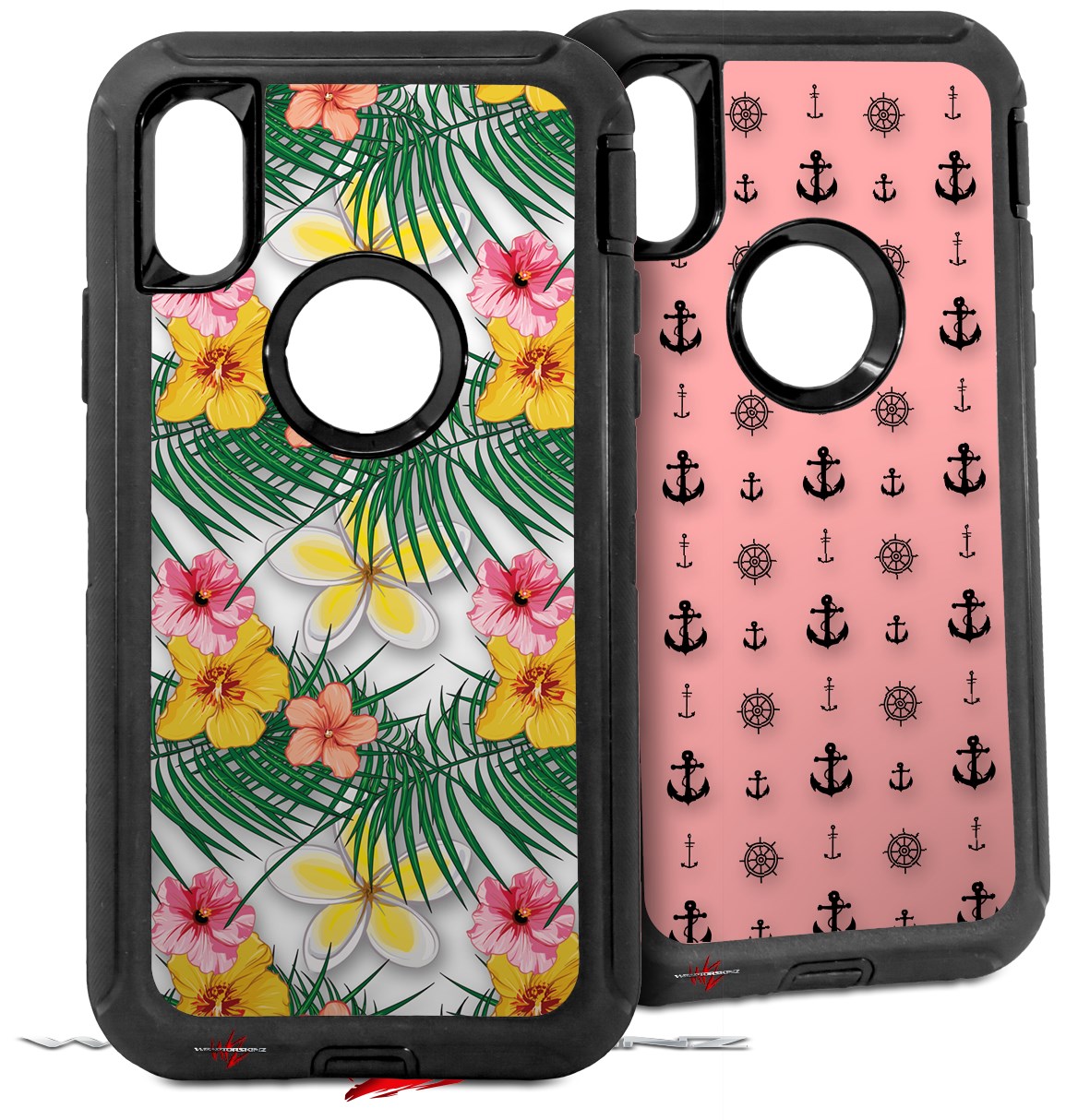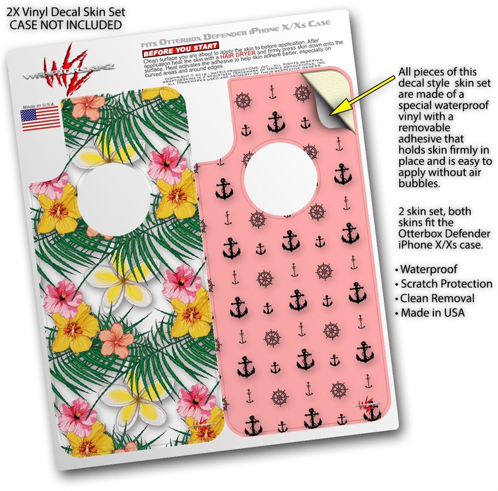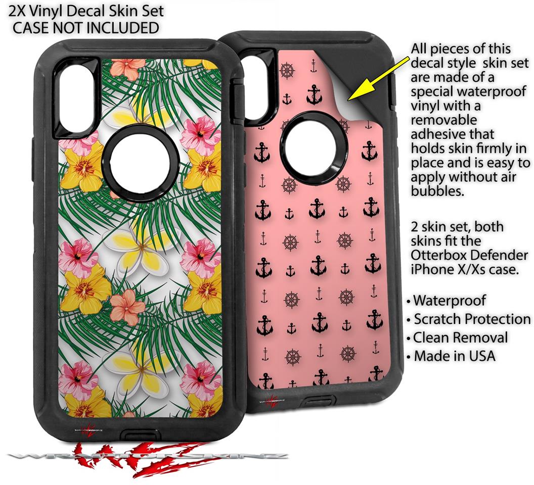 2x Decal style Skin Wrap Set compatible with Otterbox Defender iPhone X and Xs Case - Beach Flowers 02 White (CASE NOT INCLUDED)