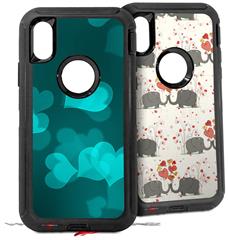 2x Decal style Skin Wrap Set compatible with Otterbox Defender iPhone X and Xs Case - Bokeh Hearts Neon Teal (CASE NOT INCLUDED)