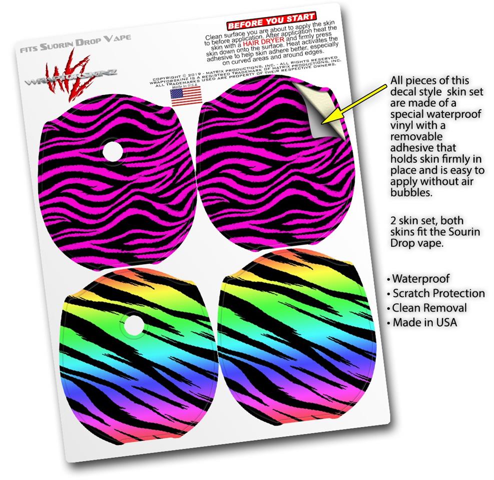 Skin Decal Wrap 2 Pack compatible with Suorin Drop Pink Zebra VAPE NOT INCLUDED