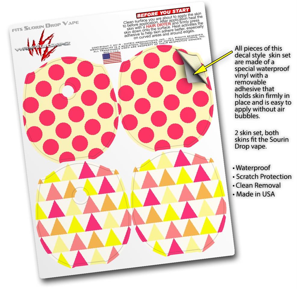 Skin Decal Wrap 2 Pack compatible with Suorin Drop Kearas Polka Dots Pink On Cream VAPE NOT INCLUDED