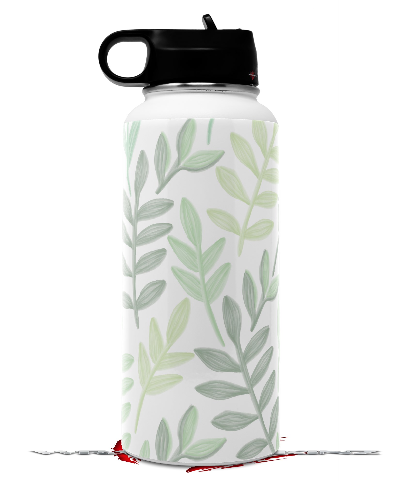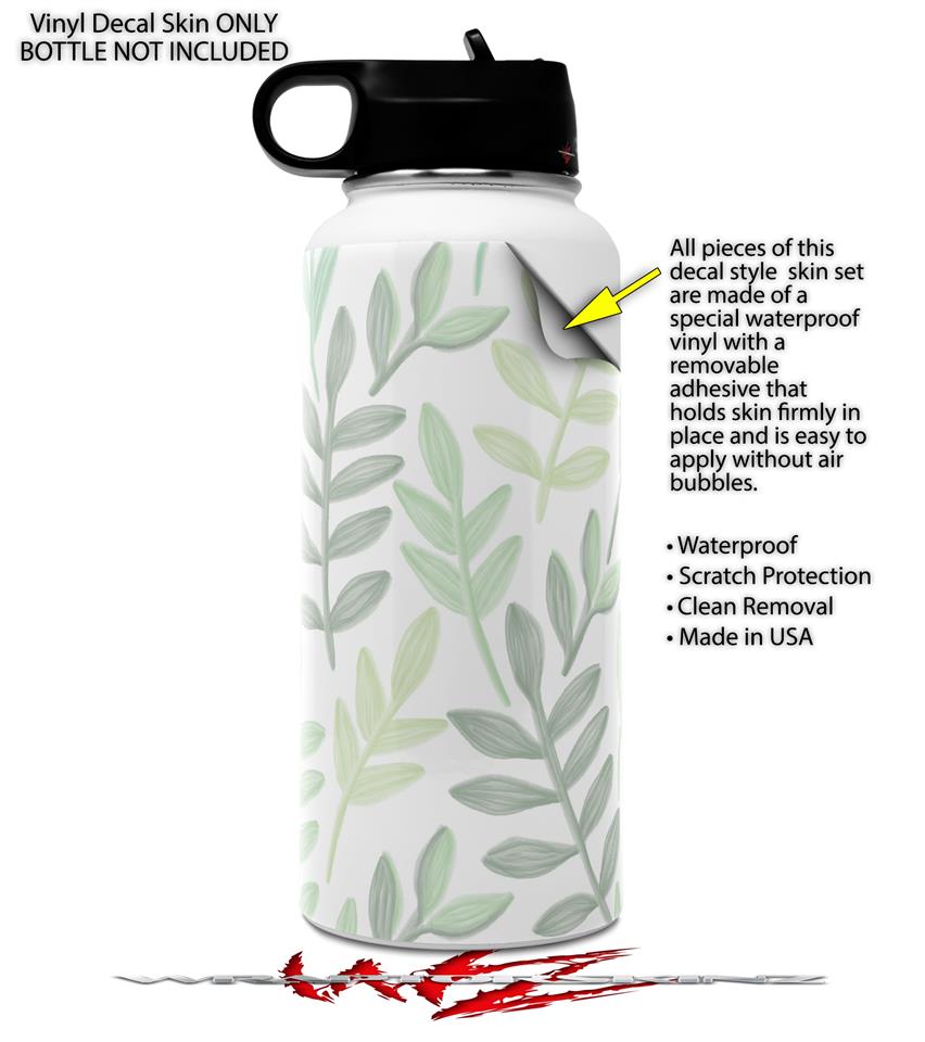 Skin Wrap Decal compatible with Hydro Flask Wide Mouth Bottle 32oz Watercolor Leaves White (BOTTLE NOT INCLUDED)