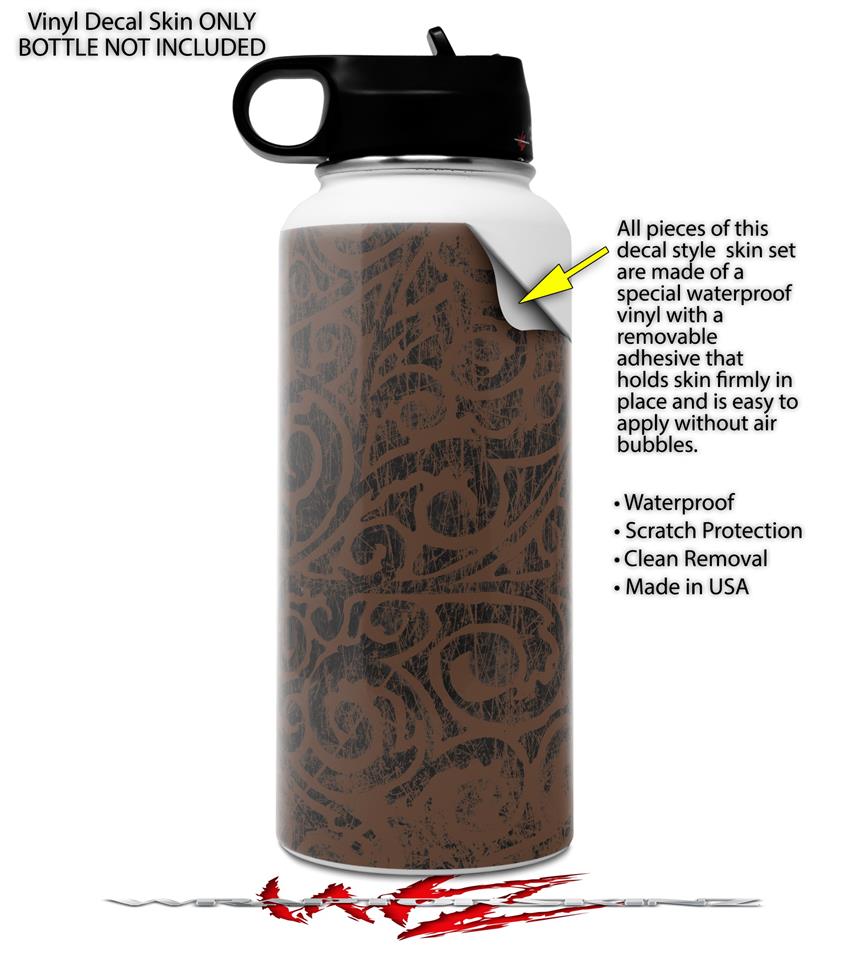 Skin Wrap Decal compatible with Hydro Flask Wide Mouth Bottle 32oz Folder Doodles Chocolate Brown (BOTTLE NOT INCLUDED)