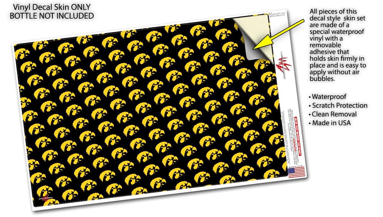 Skin Wrap Decal compatible with Hydro Flask Wide Mouth Bottle 32oz Iowa Hawkeyes Tigerhawk Tiled 06 Gold on Black (BOTTLE NOT INCLUDED)