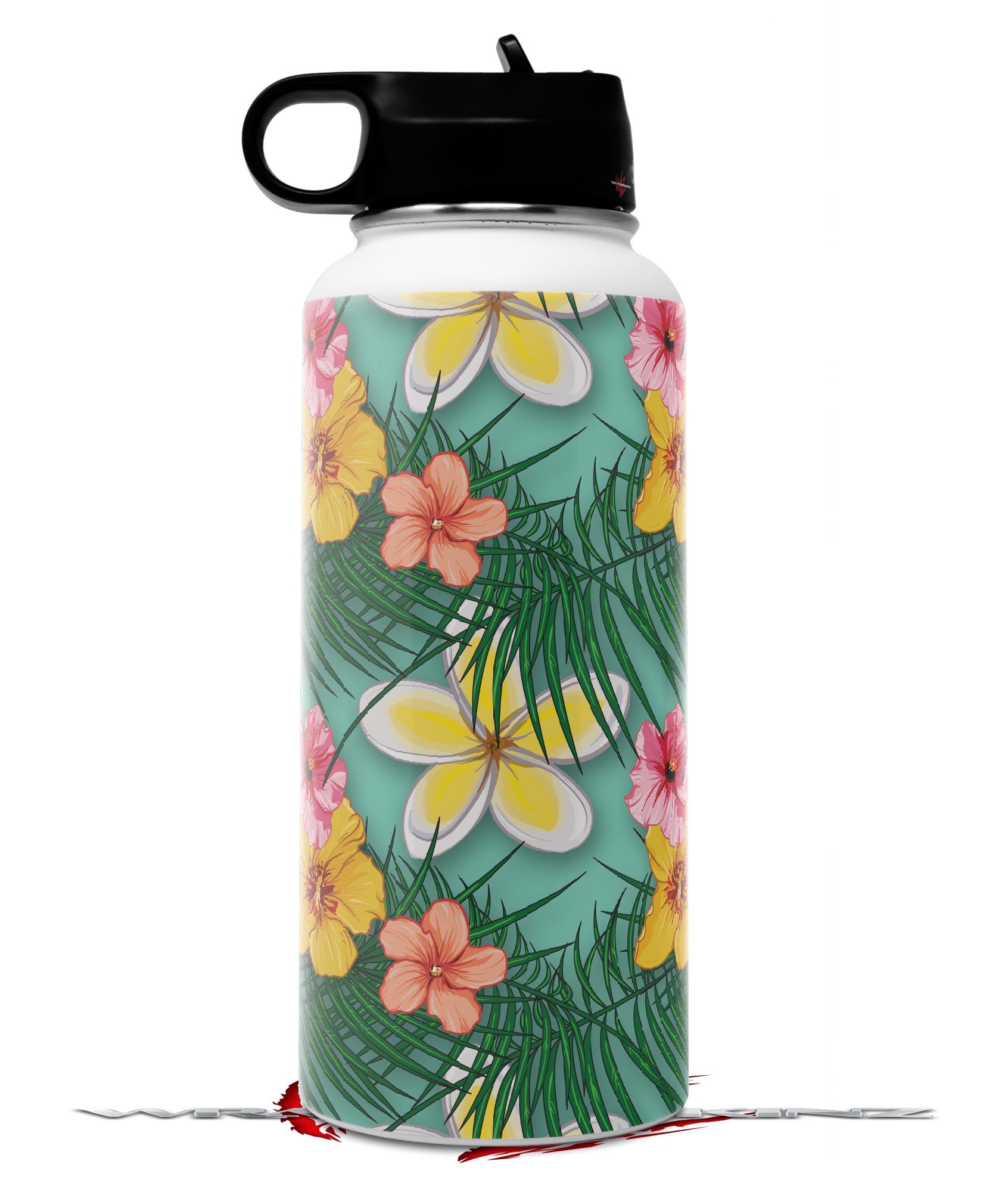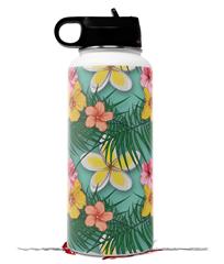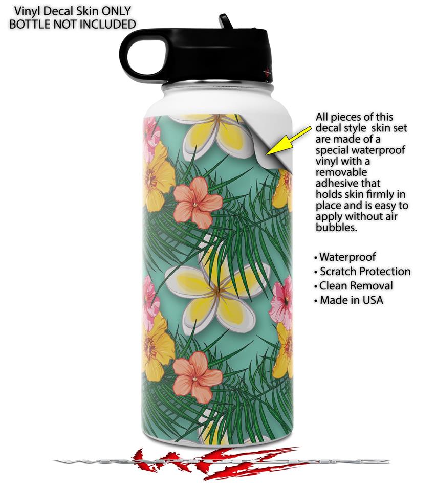 Skin Wrap Decal compatible with Hydro Flask Wide Mouth Bottle 32oz Beach Flowers 02 Seafoam Green (BOTTLE NOT INCLUDED)