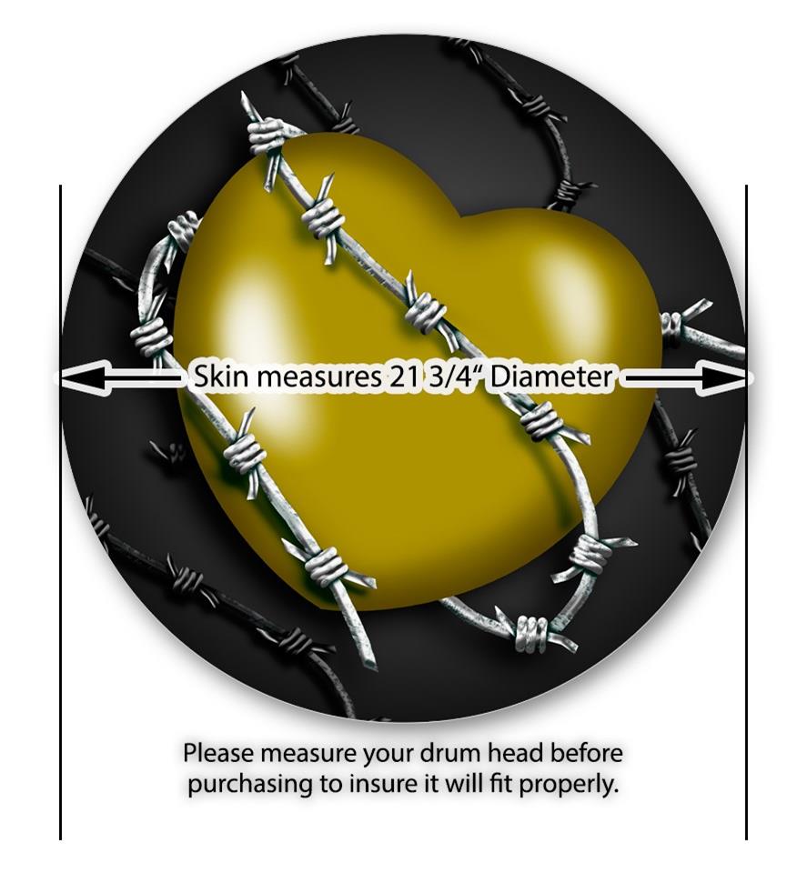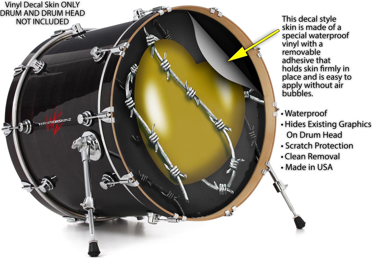 Vinyl Decal Skin Wrap for 22" Bass Kick Drum Head Barbwire Heart Yellow - DRUM HEAD NOT INCLUDED