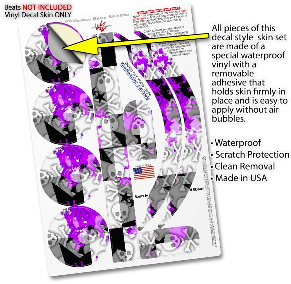 WraptorSkinz Skin Skin Decal Wrap works with Beats Solo Pro (Original) Headphones Purple Checker Skull Splatter Skin Only BEATS NOT INCLUDED