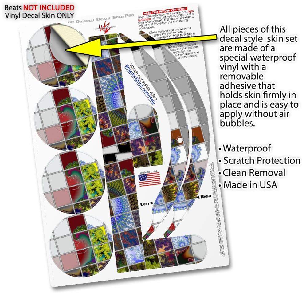 This product is in no way affiliated with or endorsed by Apple or Beats brand products. WraptorSkinz® skin wraps work with the Original Beats Solo Pro version 1 headphones. Printed using superb photo quality designs and vibrant colors printed with special fade resistant inks that last even in direct sun for years. WraptorSkinz are a composite of two layers of commercial grade materials. The bottom layer is a soft, flexible vinyl with a special removable adhesive that is easily positioned, applied without air bubbles. Next, we print the bottom layer with UV protected, fade resistant inks that deliver superb photo quality designs in vibrant colors. Finally, we bond a professional grade laminate over the entire skin adding a glossy protective finish.