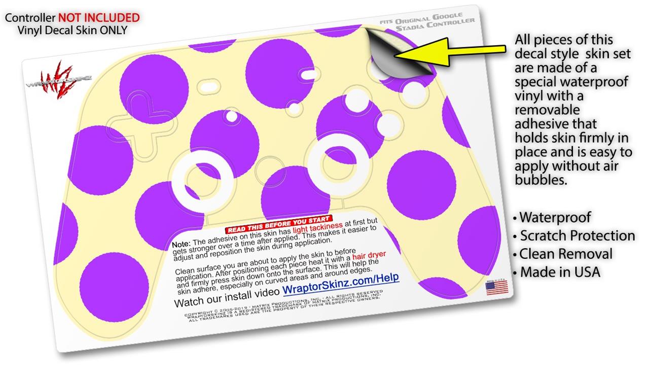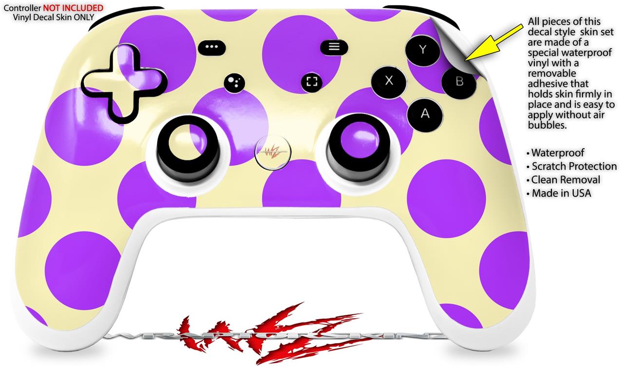 Skin Decal Wrap works with Original Google Stadia Controller Kearas Polka Dots Purple On Cream Skin Only CONTROLLER NOT INCLUDED