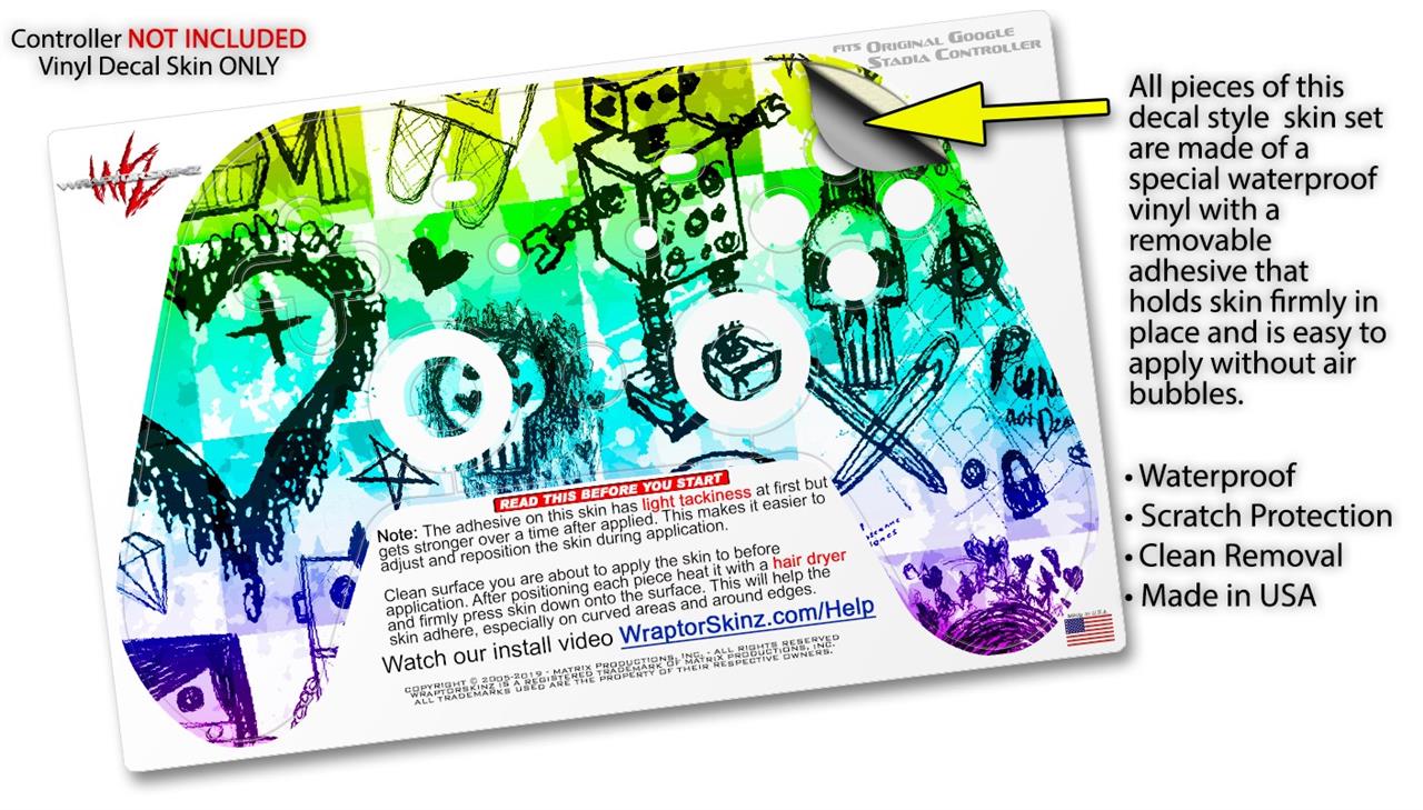 This product is in no way affiliated with or endorsed by Google. WraptorSkinz® skin wraps work with the Original Google Stadia version 1 Controller. Printed using superb photo quality designs and vibrant colors printed with special fade resistant inks that last even in direct sun for years. WraptorSkinz are a composite of two layers of commercial grade materials. The bottom layer is a soft, flexible vinyl with a special removable adhesive that is easily positioned, applied without air bubbles. Next, we print the bottom layer with UV protected, fade resistant inks that deliver superb photo quality designs in vibrant colors. Finally, we bond a professional grade laminate over the entire skin adding a glossy protective finish.