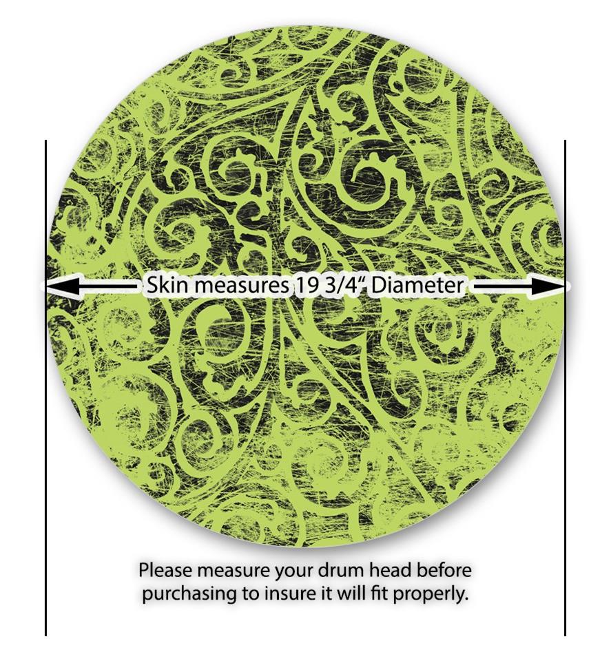 This design also available in other sizes. WraptorSkinz® skin wraps compatible with most kick drum heads. Printed using superb photo quality designs and vibrant colors printed with special fade resistant inks that last even in direct sun for years. WraptorSkinz are a composite three layer commercial grade materials vinyl. The bottom layer is a air release, grey block out removable adhesive that hides existing graphics on the drum head and is easily applied without air bubbles. The middle layer is a flexible vinyl printed with UV protected, fade resistant inks that deliver superb photo quality designs in vibrant colors. Finally, we bond a professional grade laminate over the entire skin adding a glossy protective finish.