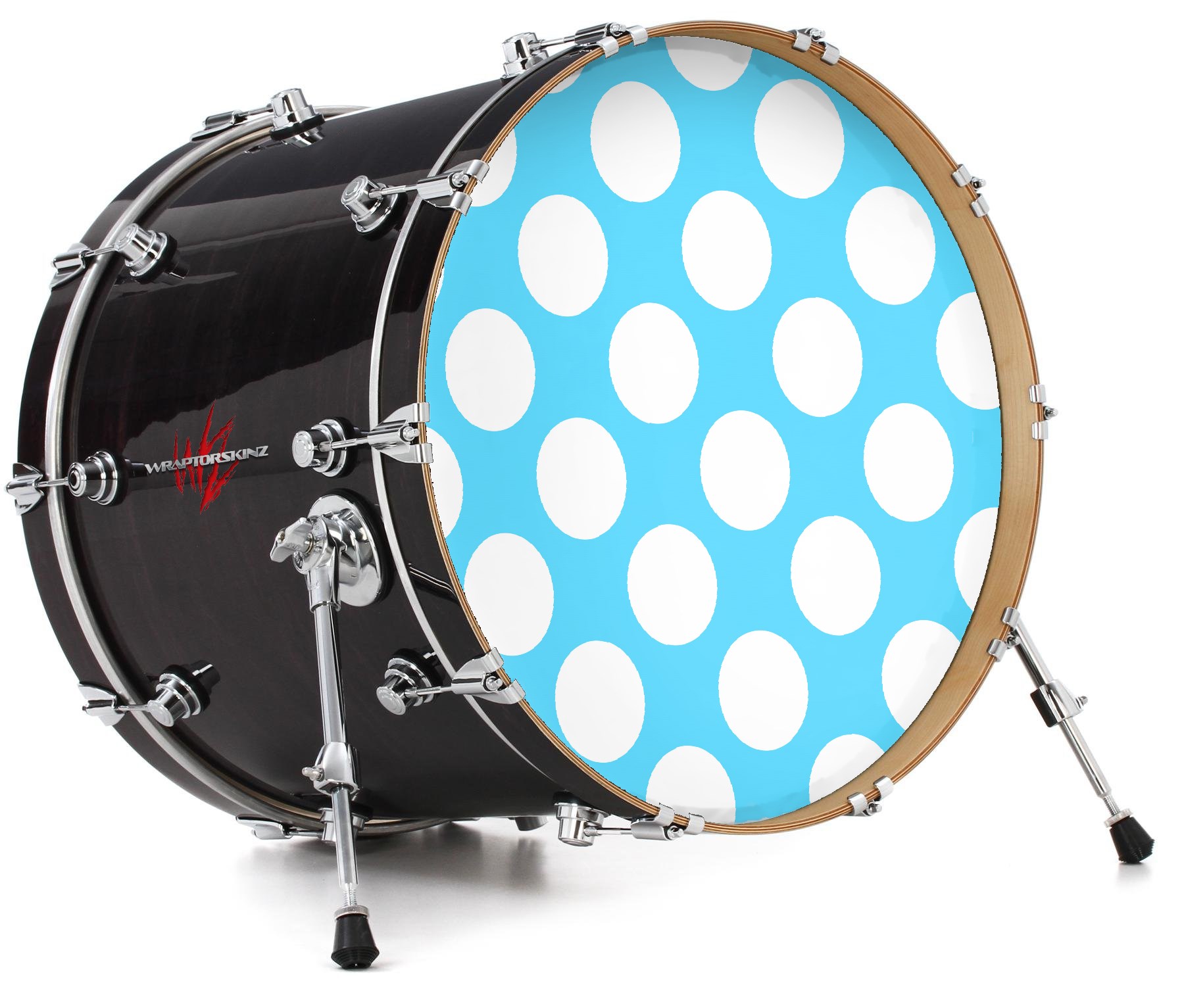 Vinyl Decal Skin Wrap for 20" Bass Kick Drum Head Kearas Polka Dots White And Blue - DRUM HEAD NOT INCLUDED