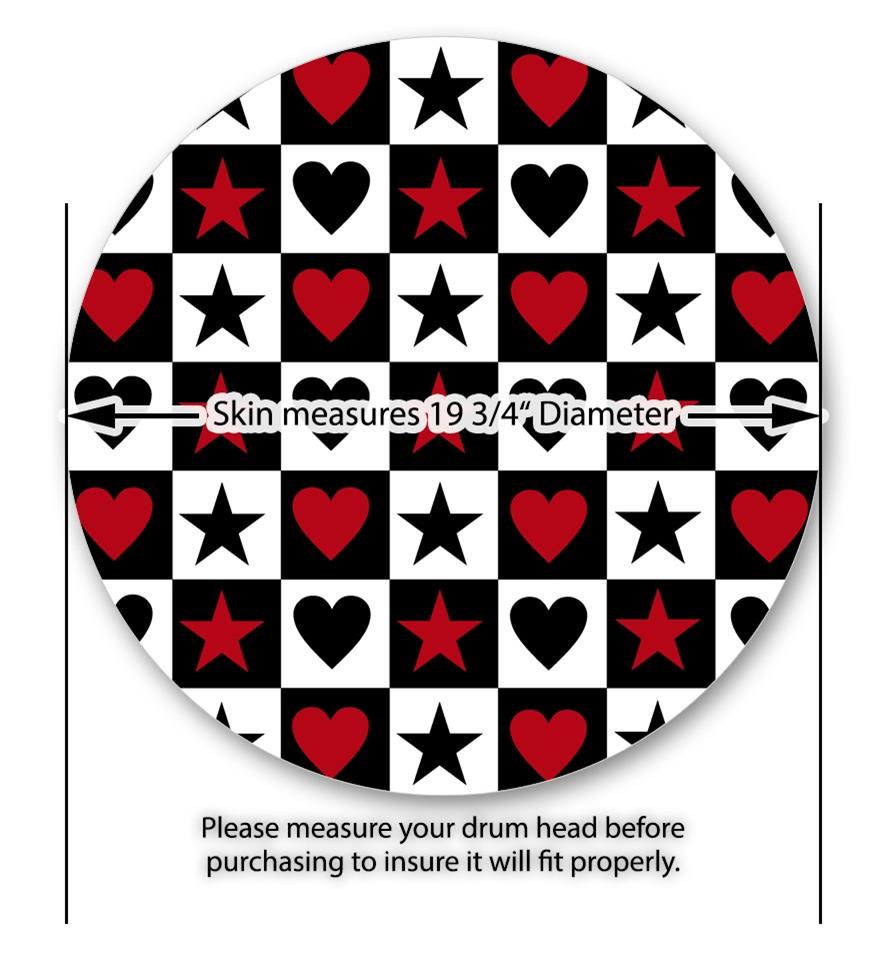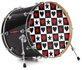 Vinyl Decal Skin Wrap for 20" Bass Kick Drum Head Hearts and Stars Red - DRUM HEAD NOT INCLUDED