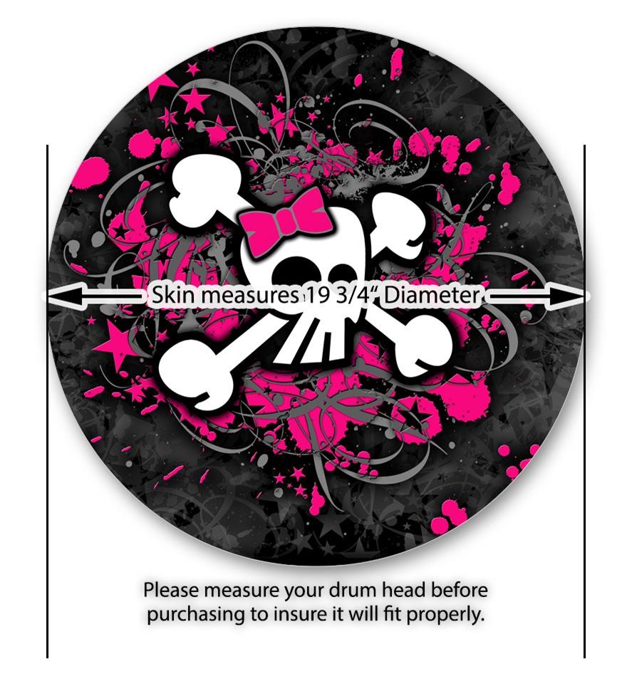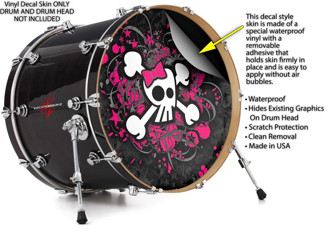Vinyl Decal Skin Wrap for 20" Bass Kick Drum Head Girly Skull Bones - DRUM HEAD NOT INCLUDED