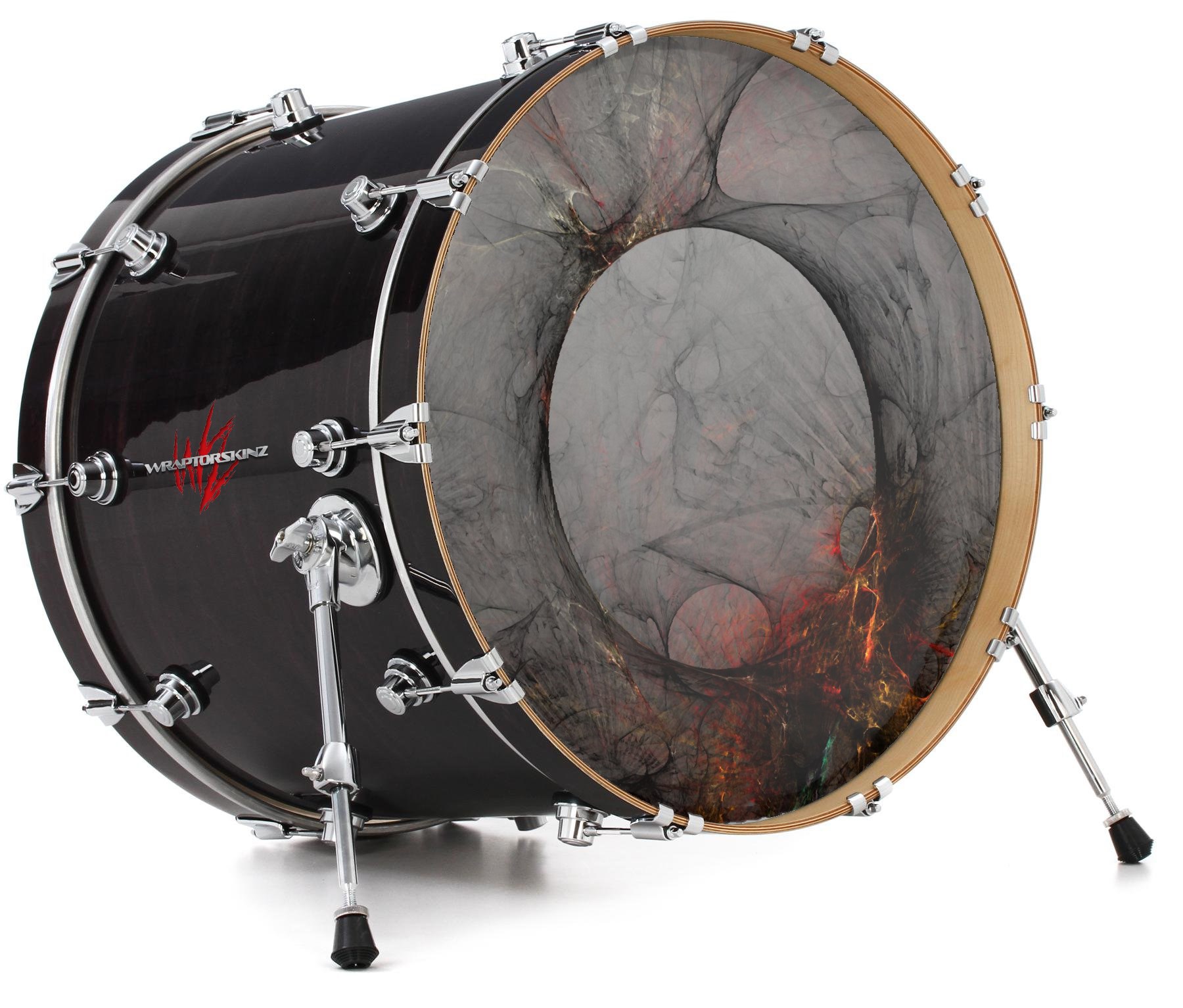 This design also available in other sizes. WraptorSkinz® skin wraps compatible with most kick drum heads. Printed using superb photo quality designs and vibrant colors printed with special fade resistant inks that last even in direct sun for years. WraptorSkinz are a composite three layer commercial grade materials vinyl. The bottom layer is a air release, grey block out removable adhesive that hides existing graphics on the drum head and is easily applied without air bubbles. The middle layer is a flexible vinyl printed with UV protected, fade resistant inks that deliver superb photo quality designs in vibrant colors. Finally, we bond a professional grade laminate over the entire skin adding a glossy protective finish.