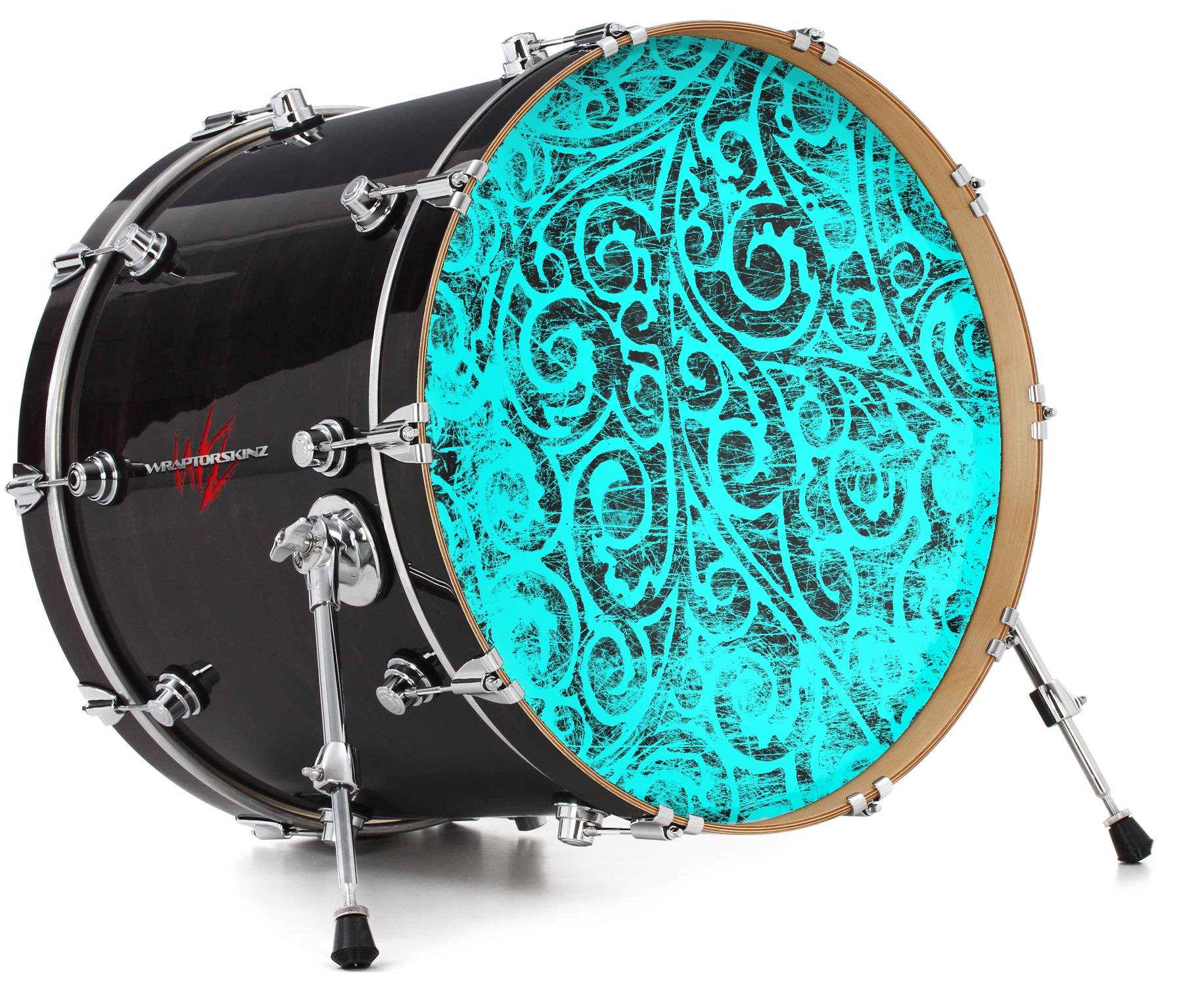 This design also available in other sizes. WraptorSkinz® skin wraps compatible with most kick drum heads. Printed using superb photo quality designs and vibrant colors printed with special fade resistant inks that last even in direct sun for years. WraptorSkinz are a composite three layer commercial grade materials vinyl. The bottom layer is a air release, grey block out removable adhesive that hides existing graphics on the drum head and is easily applied without air bubbles. The middle layer is a flexible vinyl printed with UV protected, fade resistant inks that deliver superb photo quality designs in vibrant colors. Finally, we bond a professional grade laminate over the entire skin adding a glossy protective finish.