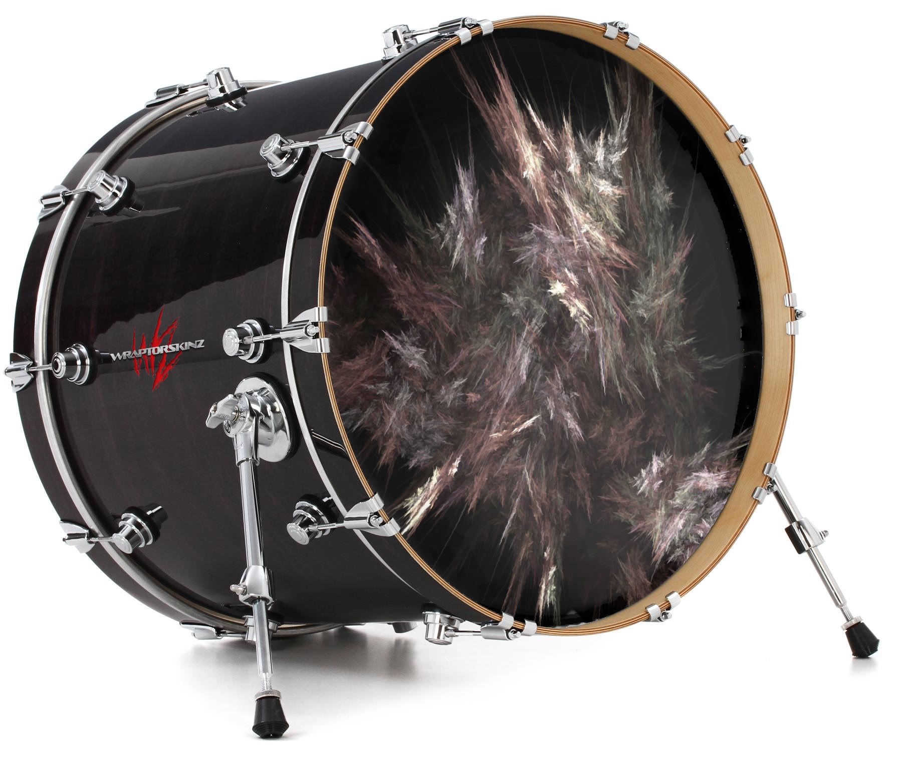 This design also available in other sizes. WraptorSkinz® skin wraps compatible with most kick drum heads. Printed using superb photo quality designs and vibrant colors printed with special fade resistant inks that last even in direct sun for years. WraptorSkinz are a composite three layer commercial grade materials vinyl. The bottom layer is a air release, grey block out removable adhesive that hides existing graphics on the drum head and is easily applied without air bubbles. The middle layer is a flexible vinyl printed with UV protected, fade resistant inks that deliver superb photo quality designs in vibrant colors. Finally, we bond a professional grade laminate over the entire skin adding a glossy protective finish.