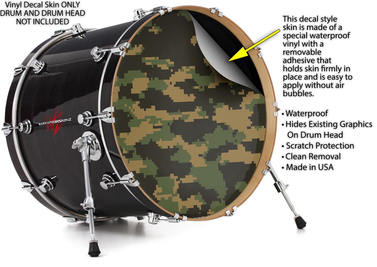 Decal Skin works with most 24" Bass Kick Drum Heads WraptorCamo Digital Camo Timber - DRUM HEAD NOT INCLUDED