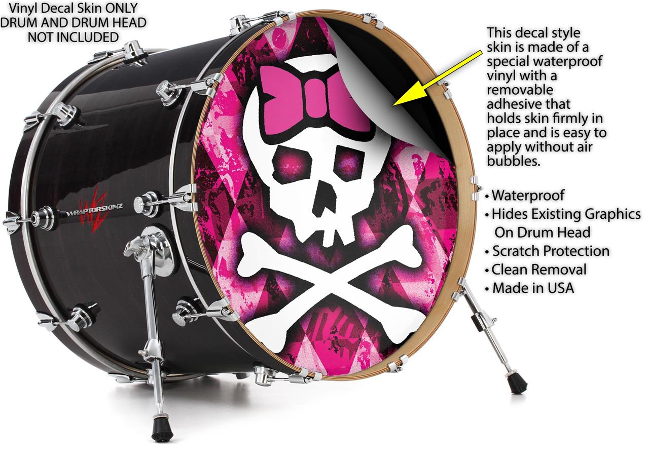 Decal Skin works with most 24" Bass Kick Drum Heads Pink Bow Princess - DRUM HEAD NOT INCLUDED