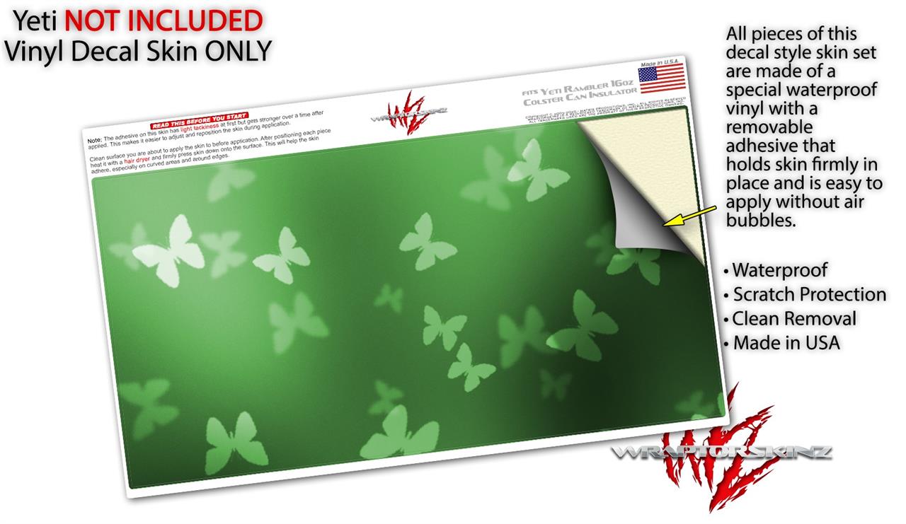 WraptorSkinz Skin Decal Wrap compatible with Yeti 16oz Tall Colster Can Cooler Insulator Bokeh Butterflies Green (COOLER NOT INCLUDED)