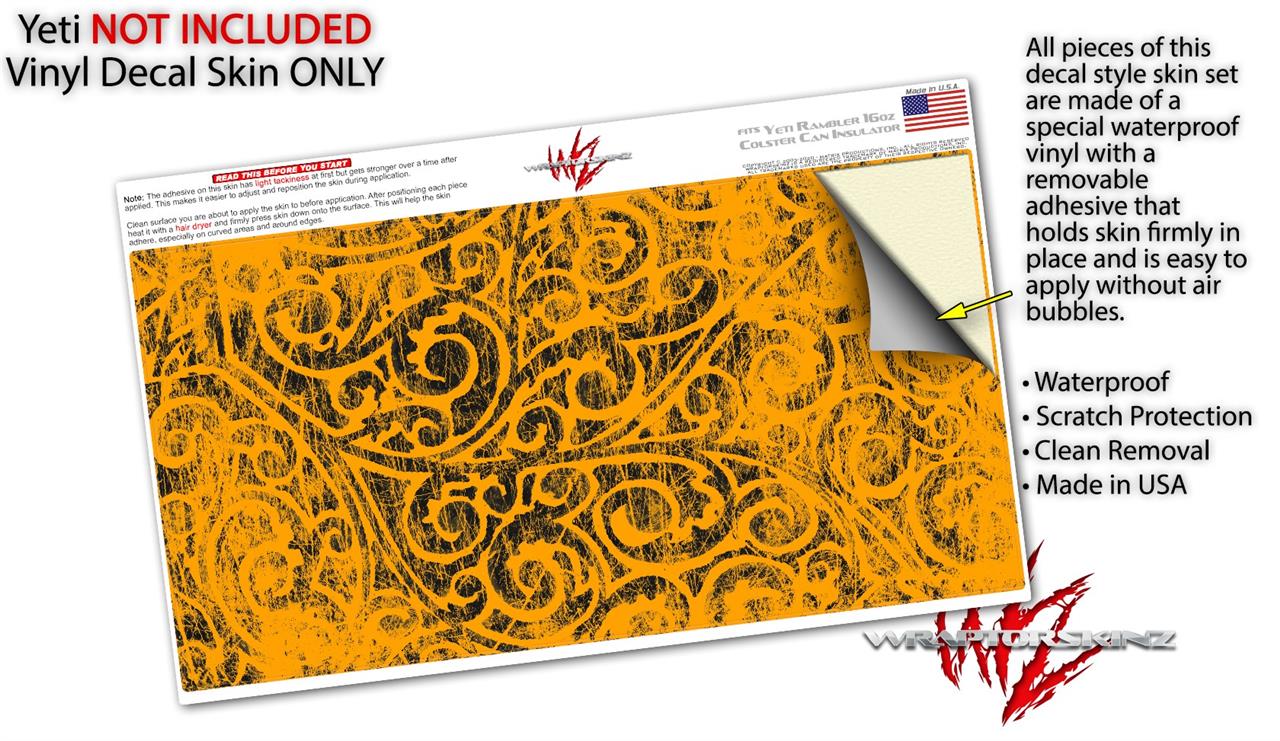 WraptorSkinz Skin Decal Wrap compatible with Yeti 16oz Tall Colster Can Cooler Insulator Folder Doodles Orange (COOLER NOT INCLUDED)