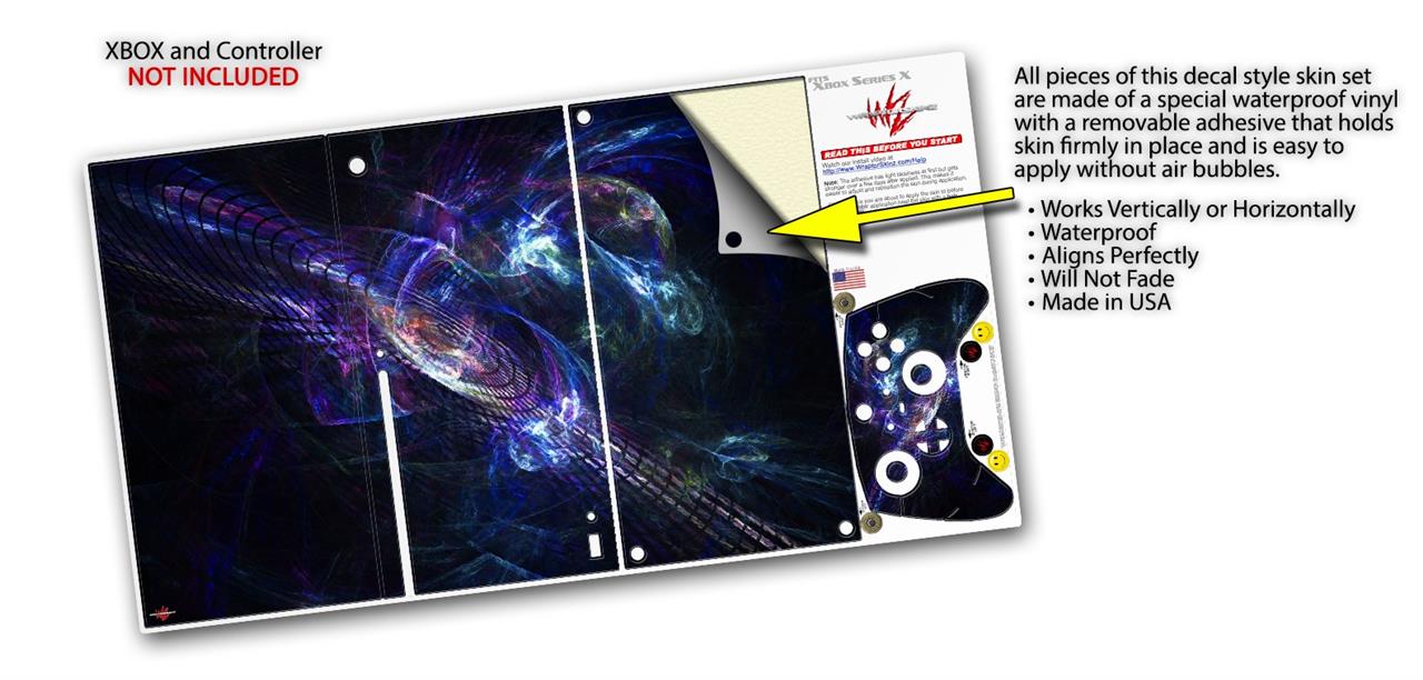 WraptorSkinz® skin wraps for the XBOX Series X gaming console and controller reelase November 2020 are printed using superb photo quality designs and vibrant colors printed with special fade resistant inks that last even in direct sun for years. WraptorSkinz are a composite of two layers of commercial grade materials. The bottom layer is a soft, flexible vinyl with a special removable adhesive that is easily positioned, applied without air bubbles. Next we print the bottom layer with UV protected, fade resistant inks that deliver superb photo quality designs in vibrant colors. Last, we bond a professional grade laminate over the entire skin adding a glossy protective finish. This product is not affiliated with or endorsed by Microsoft or the XBOX brand.