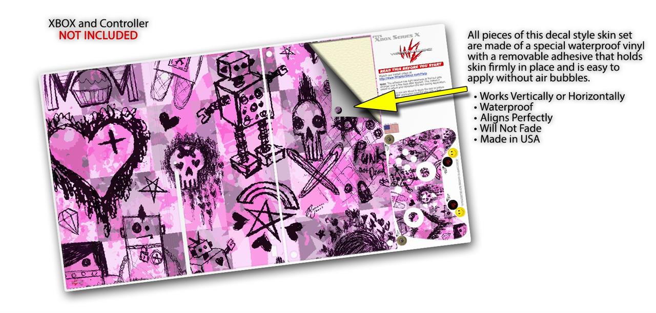 WraptorSkinz Skin Wrap compatible with the 2020 XBOX Series X Console and Controller Scene Kid Sketches Pink (XBOX NOT INCLUDED)