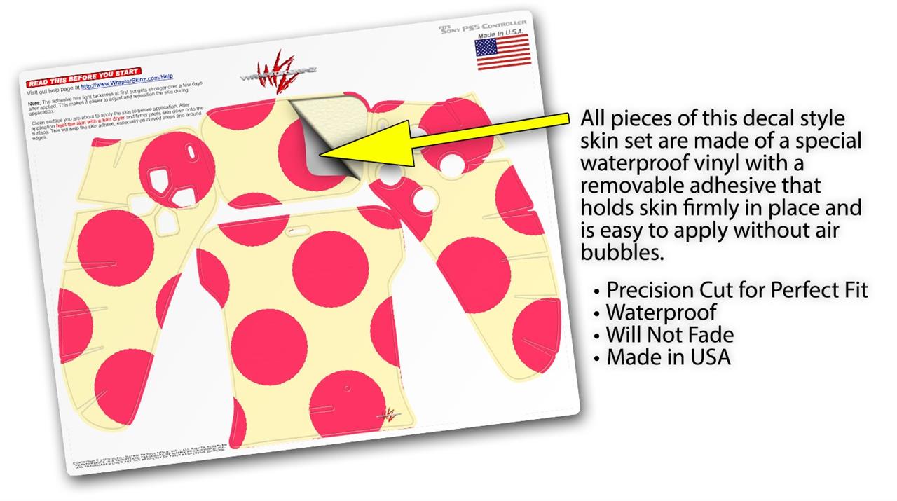 WraptorSkinz Skin Wrap compatible with the Sony PS5 DualSense Controller Kearas Polka Dots Pink On Cream (CONTROLLER NOT INCLUDED)