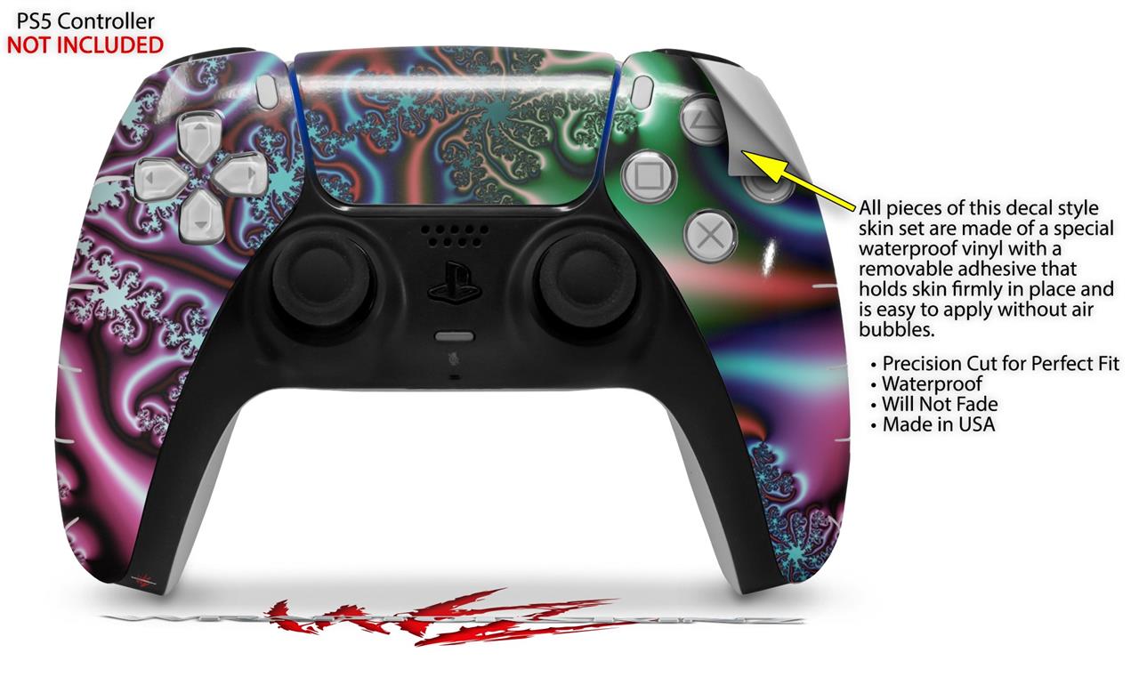 WraptorSkinz® skin wraps for the Sony Playstation 5 controller are printed using superb photo quality designs and vibrant colors printed with special fade resistant inks that last even in direct sun for years. WraptorSkinz are a composite of two layers of commercial grade materials. The bottom layer is a soft, flexible vinyl with a special removable adhesive that is easily positioned, applied without air bubbles. Next we print the bottom layer with UV protected, fade resistant inks that deliver superb photo quality designs in vibrant colors. Last, we bond a professional grade laminate over the entire skin adding a glossy protective finish. This product is not affiliated with or endorsed by Sony or the Playstation brand.