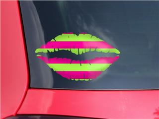 Lips Decal 9x5.5 Kearas Psycho Stripes Neon Green and Hot Pink