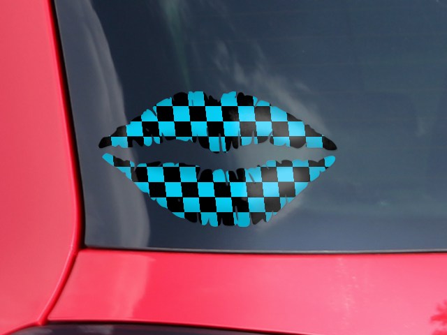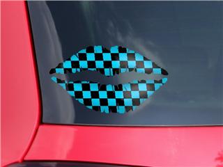 Lips Decal 9x5.5 Checkers Blue