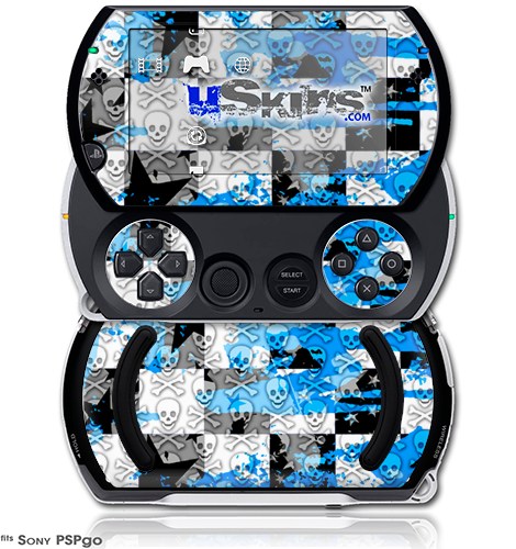 Checker Skull Splatter Blue - Decal Style Skins (fits Sony PSPgo)