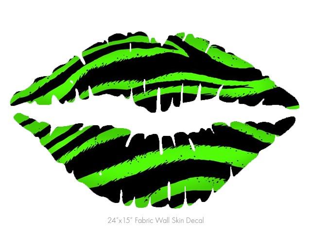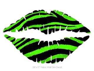 Zebra Green - Kissing Lips Fabric Wall Skin Decal measures 24x15 inches