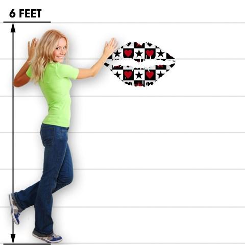 Hearts and Stars Red - Kissing Lips Fabric Wall Skin Decal measures 24x15 inches