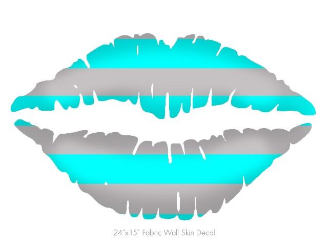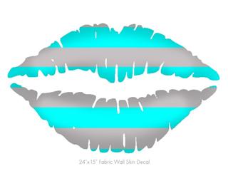 Psycho Stripes Neon Teal and Gray - Kissing Lips Fabric Wall Skin Decal measures 24x15 inches