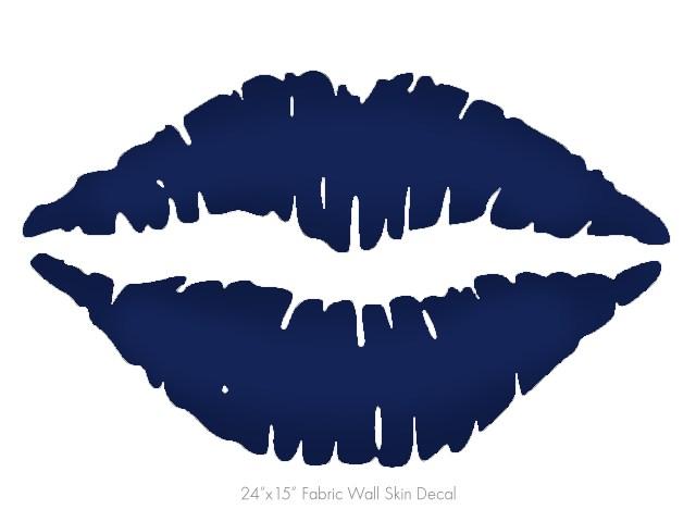 Solids Collection Navy Blue - Kissing Lips Fabric Wall Skin Decal measures 24x15 inches