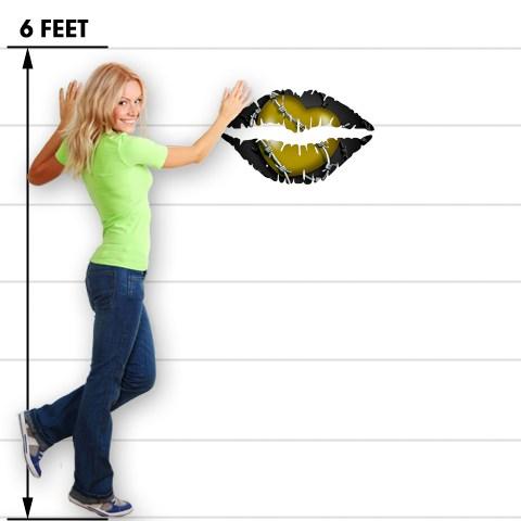 Barbwire Heart Yellow - Kissing Lips Fabric Wall Skin Decal measures 24x15 inches