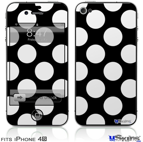 iPhone 4S Decal Style Vinyl Skin - Kearas Polka Dots White On Black