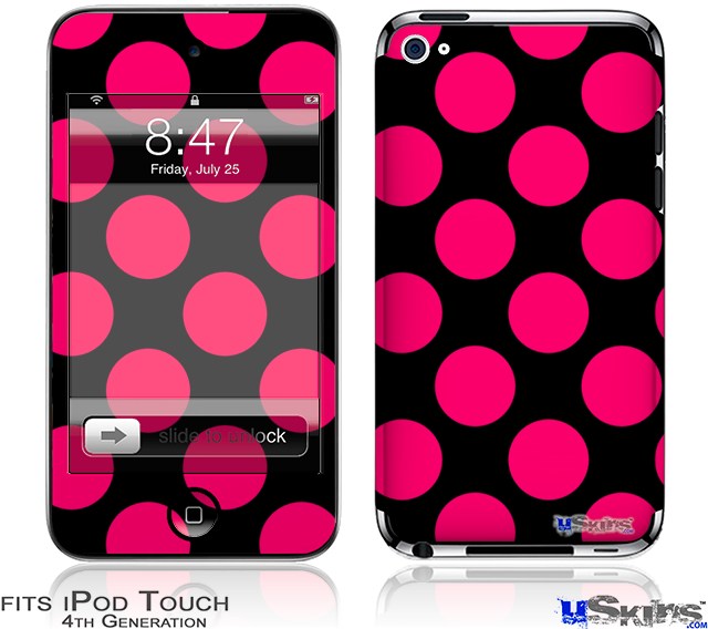 iPod Touch 4G Decal Style Vinyl Skin - Kearas Polka Dots Pink On Black